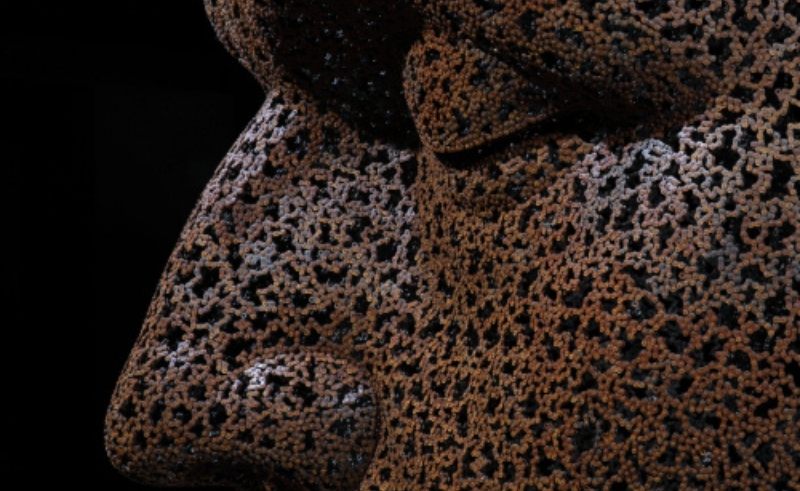 A stunning, hyper-realistic sculpture of a pensive male head with closed eyes, crafted entirely from 1,554 meters of welded, rusted bicycle chains. In the midst of the festival's energy, this work is a silent, powerful monument to stillness. It’s a reminder of the profound peace that can be forged from the raw materials of industry and chaos.