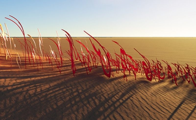 Artist, sculptor, and calligrapher Shabir Mir presents a large-scale installation of Arabic letters rising like plants from the desert floor. Arranged at varying heights, the letters curve and stretch skyward, forming the word “Passion” at their peak. The work celebrates the organic flow of Arabic script while inviting visitors to wander through a garden of forms.