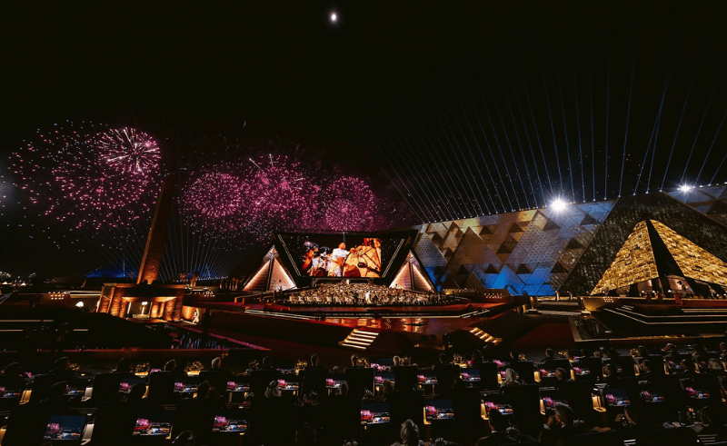 For GEM’s opening, Alchemy Design Studio led the spatial and sensory experience, curating the architectural journey from arrival to farewell, while Attia, with his cinematic instinct, directed the stage and audience layout, turning the museum into a live set worthy of Egypt’s grandest cultural reveal.