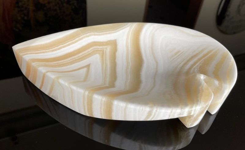 “While it feels to me as though it is reaching wide for a hug, this unusual alabaster Guardian plate reimagines the sacred symbolism of envy in contemporary form. Arouset El-Hasad is here to protect.”