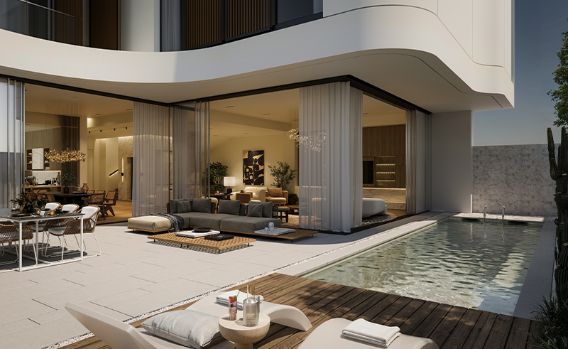 Architecturally, the villas rely on restraint. Curved forms replace sharp edges, and shading is built directly into the structure rather than layered on afterwards. From the outside, the buildings look contemporary but not experimental, more concerned with longevity than visual impact. They are designed to stay relevant as the neighbourhood continues to evolve around them.