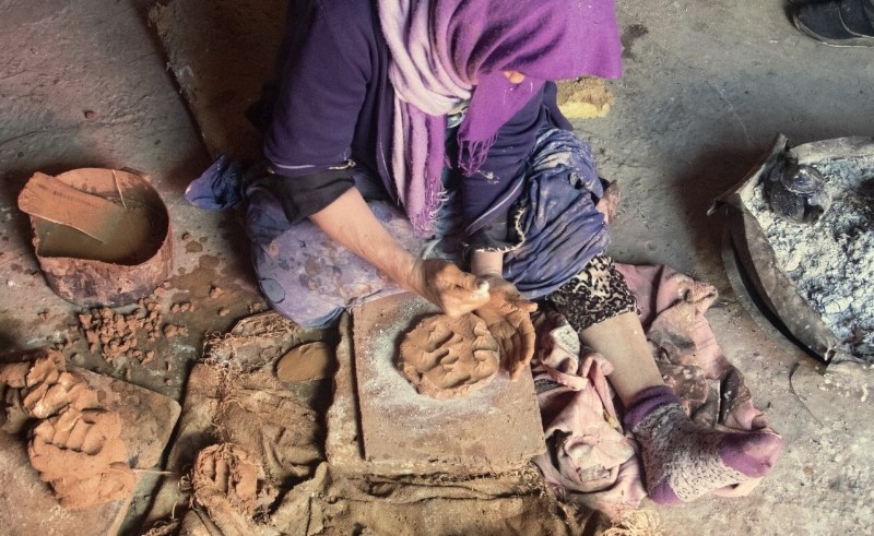 The limited, numbered editions are a consequence of how this kind of making actually works. Sejnane pottery slows in cold weather because the pieces need to air-dry without cracking and a single woven cabinet panel takes weeks of one person's time. "You can't imagine having big volumes," Sfar says. "The resource itself won't allow it."
