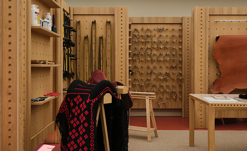 The Saddle Workshop addresses the physical nature of equestrian craft. Leather, brass, and working tools shape the environment of saddle making. Designed as a place of instruction and repetition, the workshop accommodates the teaching of traditional techniques, where tools and materials remain visible and within reach. Robust surfaces and careful detailing support daily use and long-term durability.