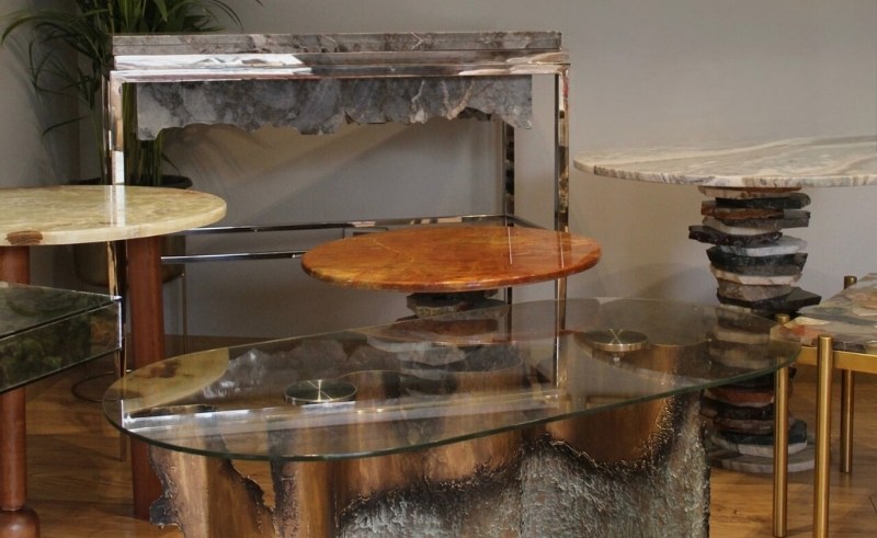 Egyptian brand Klekthaus builds furniture from materials that rarely appear together in conventional design. Broken marble fragments become structural supports, oxidised metal is left deliberately rusted, and raw wood sits beneath glass surfaces designed to function as display vitrines. Across its early pieces, stone, metal, and wood are not simply finishes but the structural language of the objects themselves.