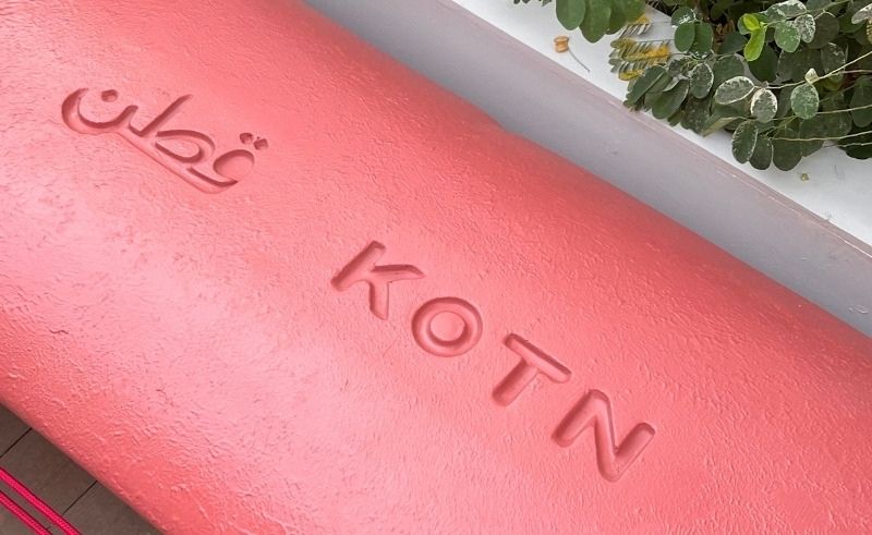 With their smooth, rounded silhouettes and soft coral finish, the benches are stamped with Kotn’s name in Arabic and English — a quiet intervention in the streetscape that’s difficult to ignore.