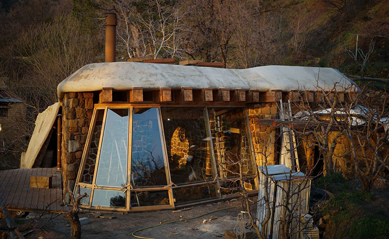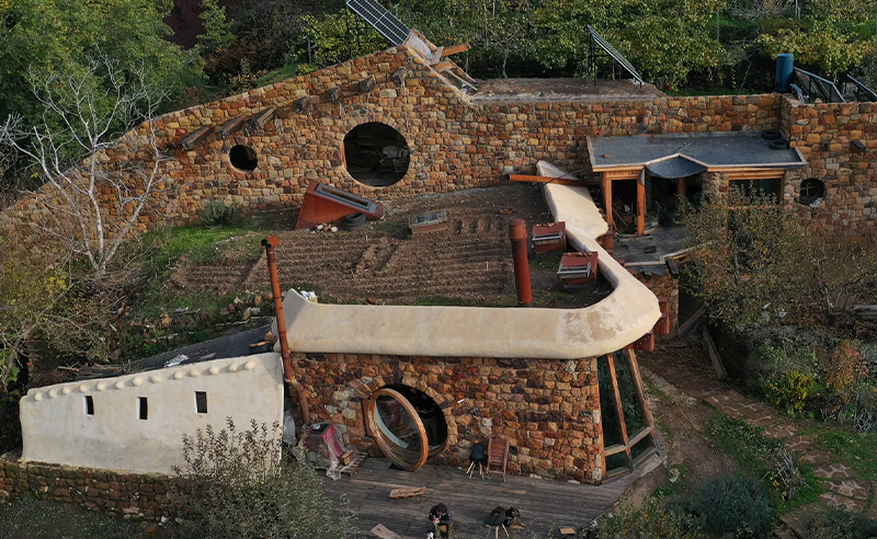 “Architecture should be a shelter that answers human and nature’s needs, without harming the environment.” With that philosophy in mind, recycling became the backbone of the design. The rocks used in the house were sourced directly from the ground on which it was built. Soil excavated during construction was reused in the walls themselves. Rubber tyres that would otherwise be burned in landfills were packed with earth and integrated into the structure, giving them new life as part of the building’s thermal mass.