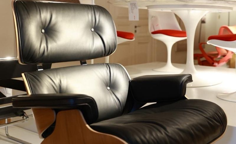 Among the highlights of the exhibition is the Wassily Chair by Marcel Breuer, combining elegance with industrial flair. Its leather or fabric straps are integrated into a precision-bent tubular steel frame in chrome or powder-coated finishes. Designed in 1925, it remains a bold, recognisable statement in any office, lounge, or lobby. Nearby, the Eames Lounge Chair and Ottoman by Charles and Ray Eames offer comfort and structure, with moulded timber and soft upholstery showcasing the Eameses’ mastery of ergonomics and material performance.
