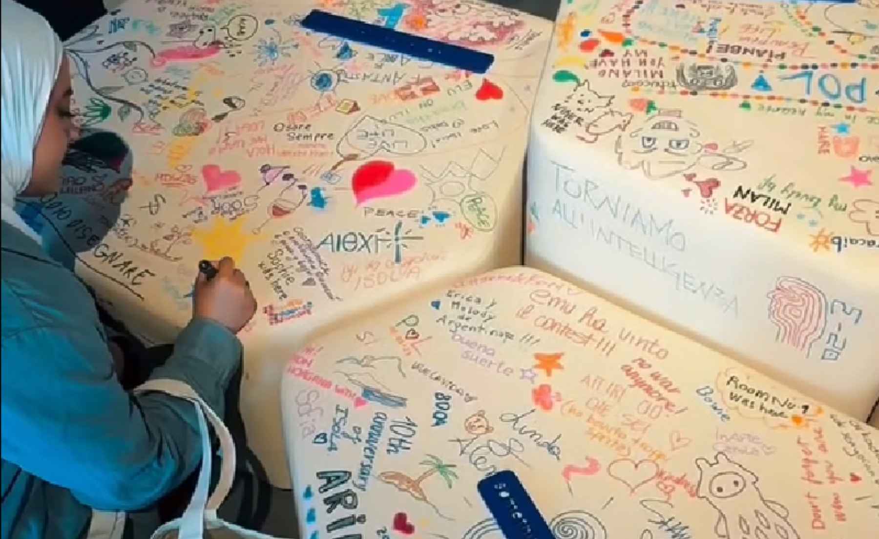 Designed by Wazni for Studio Obliq, The Conversation Sofa is a drawable, writable sofa that becomes a living archive of all those who visit it.