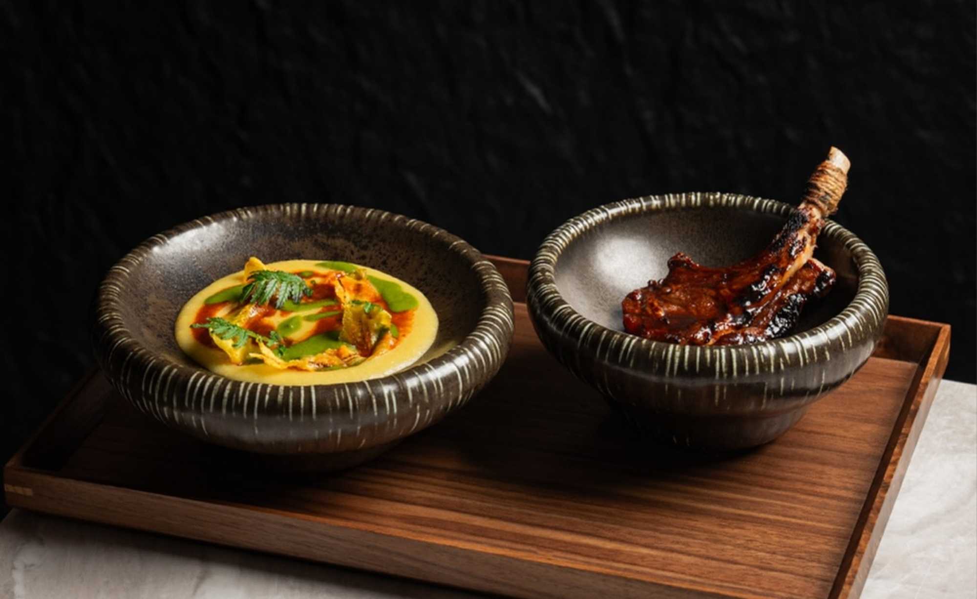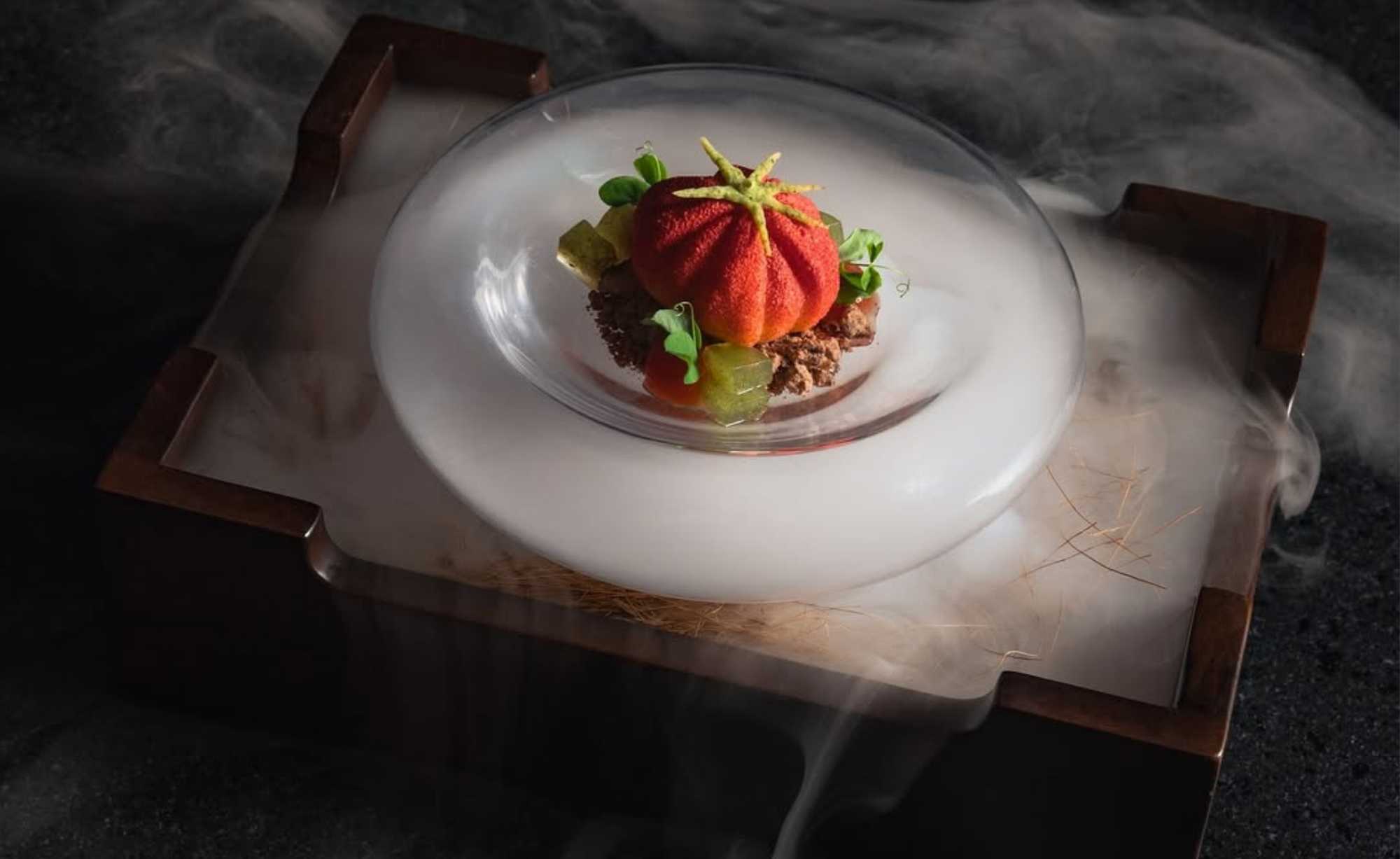 The menu sways to Kenya: ostrich samosa with raspberry spice gel and dried mint yogurt. Somalia and Nigeria, where a pepper stew called Ata Din Din arrives with otoro tuna and caviar, followed by street food Suya Wagyu, then fufu—the staple, the everyday, the thing millions eat with their hands—becomes a crab croquette dressed in Madagascan vanilla. Then a dish called ‘How are you?' in Ghanaian, named for the people he lived with in Ghana, the ones who taught him things you can't learn from the internet. Then Golden Ribs from Zanzibar, short ribs in an African curry made from more than twenty ingredients. Then the tomato dessert that changed his life on national television. And finally, the South African malva pudding, Nelson Madela’s favourite dessert.