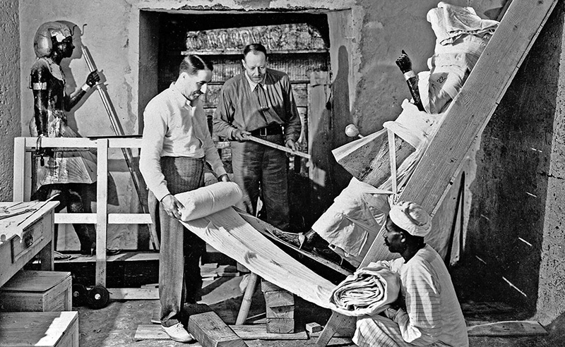 Working on the excavation site under Carter’s team, Abdelrasoul was carrying water to the labourers when his donkey stumbled and fell. By chance, Abdelrasoul noticed that beneath the wet sand a stone step had been carved into the ground, and he quickly called for Carter. Carter ordered an excavation of the spot that had for years been eluding his team, uncovering first the staircase and eventually the tomb that would spark a wave of Egyptomania across the world.