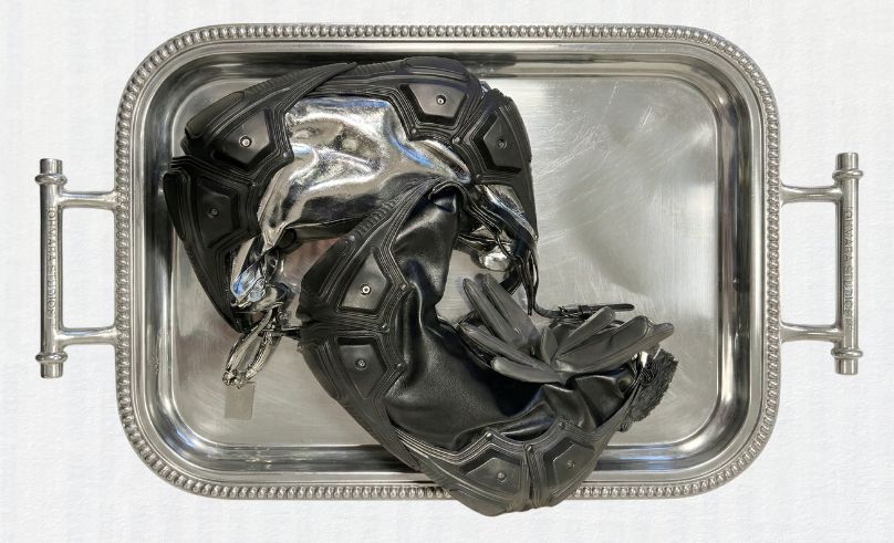 They’re continuing this experimentation process, by “exploring new materials, more exaggerated proportions, possibly objects that blur the line between accessory/ add-on and art piece.” Their process, they explain, begins “with a feeling before it begins with a form.” Rather than starting from a fixed sketch, inspiration often comes from sensory fragments: “the way light hits chrome at night,” “the weight of something in your hand,” or even “the absence of something,” when a silhouette feels unresolved. From there, the work develops through “a structural idea and material exploration,” sometimes led by shape, sometimes by contrast, before moving into prototyping to test “weight, volume, and balance.” They are especially drawn to materials that feel “cold, dense, and permanent,” including chrome, latex, rubber, and leather.