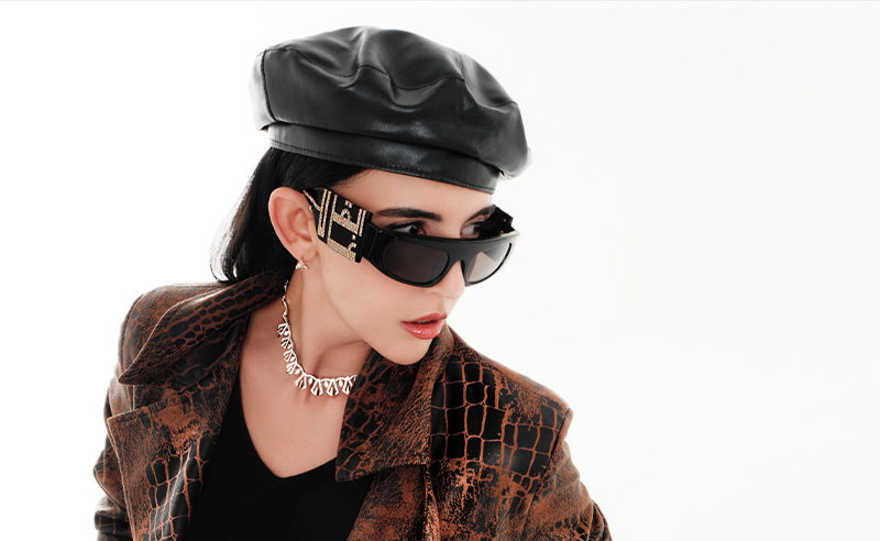 “The inspiration came from my mother, who always tells me, ‘Hadia, you look great, Al-Aleb Ghaleb anyway,’” Ghaleb says. “I wanted to immortalize this phrase on a pair of statement sunglasses. It’s a play on words that connects my last name, Ghaleb, with this iconic Arabic expression, turning it into something deeply personal yet universally resonant.” The sentiment is intimate; the execution is maximal.