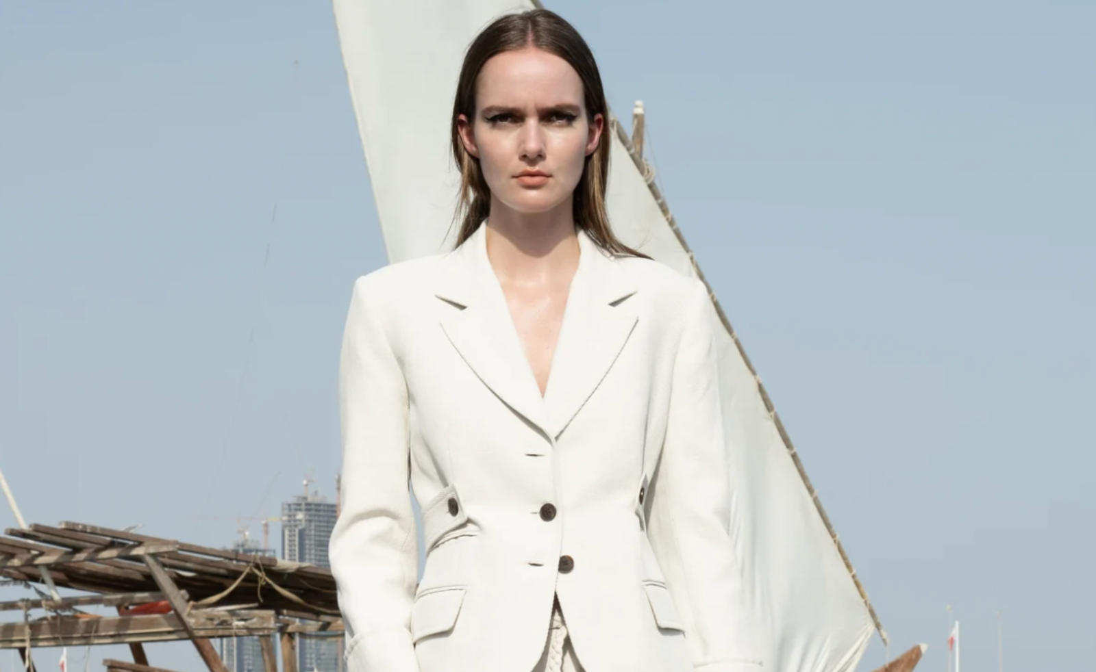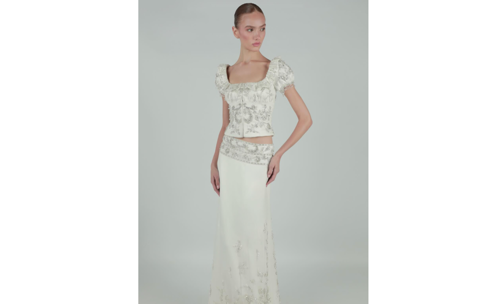 This season, designers are treating this off-white as a fully fledged palette rather than a supporting act. It runs through sharp tailoring and draped eveningwear, detailed lace and sculpted accessories, linking everything through tone instead of print.