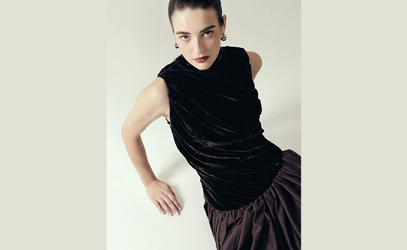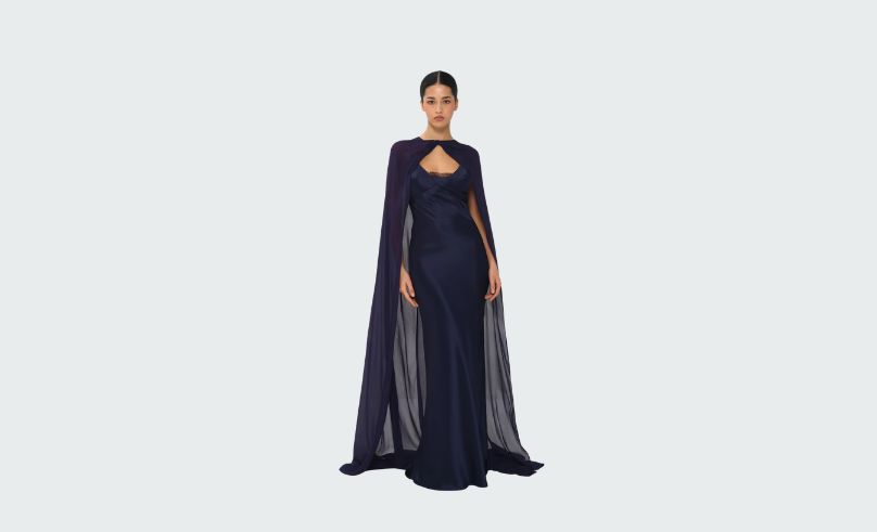 On the Aisha Maxi Dress from Cult Mia, plum appears in a full-length draped silhouette. Abadia’s Midi Ariya Dresscombines a velvet bodice with a structured skirt. Nora Label’s Siora Gown includes a detachable cape layered over a floor-length base.