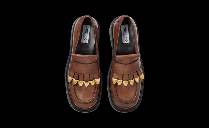 Jimmy Choo — Buff Tassel Loafer in Mocha Burnished Leather