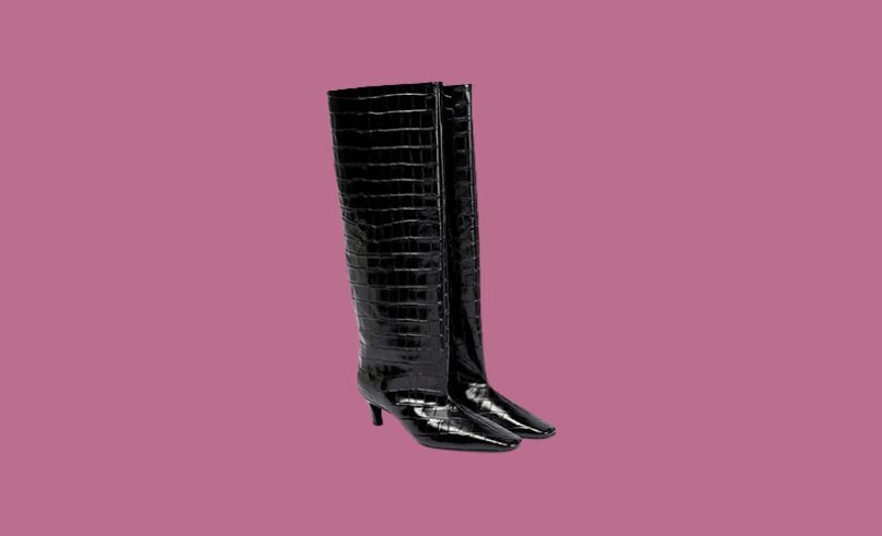 Totême l Croc-Effect Leather Knee-High Boots in Black