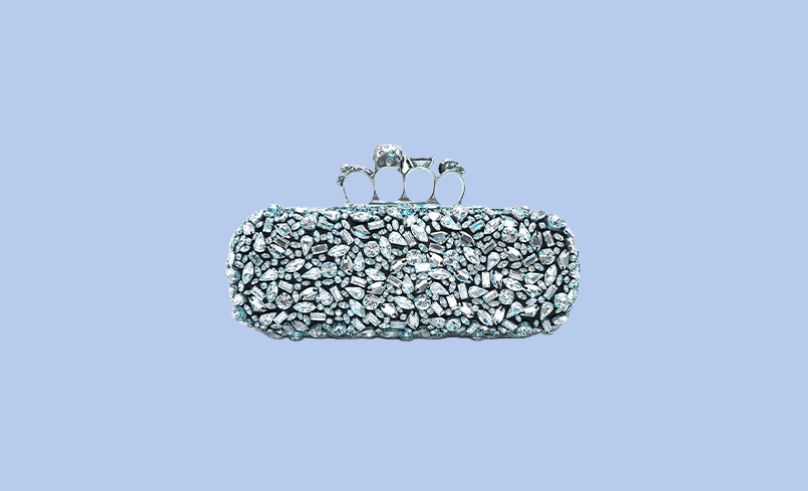 Alexander McQueen l King & Queen Knuckle Clutch Bag in Silver Tone with Swarovski Crystal Embellishment