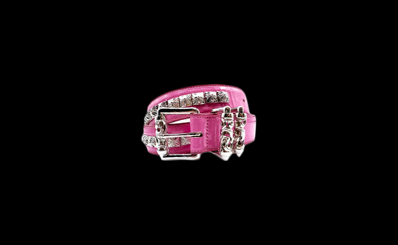 Chrome Hearts l Pyramid Stud Leather Rhodium Pink Roller Belt