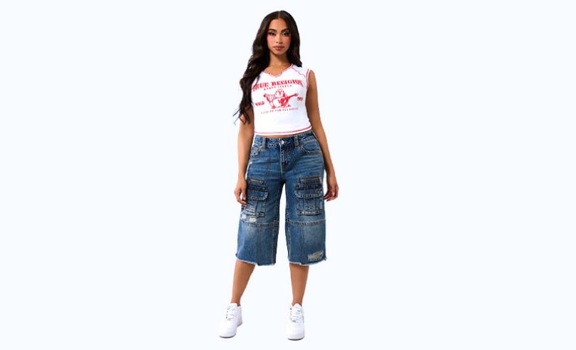 Cropped cargos with raw hems and a utilitarian edge. They’re giving “festival field chic”.