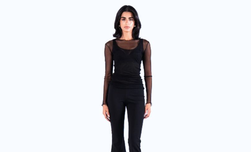 Two tops in one — layered, sheer, and booth-friendly. Perfect for making it look like she styled an outfit when really, she doubled up.