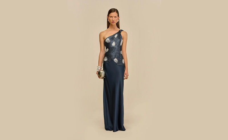 Across this Scene Styled edit, they show up in fluid pieces like Valt’s tie blouse, sharper silhouettes like Onori’s strapless jumpsuit, and even in detail-driven accessories like Amina Muaddi’s satin slingbacks. Elsewhere, the print loosens up. Rota’s open-back halter and Kika’s mixed-dot dress lean into a more playful take, while Cult Gaia’s beaded Stormie top reworks the pattern into texture rather than print.
