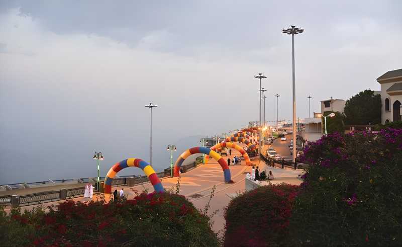 Start early at the Al-Dabab Walkway in Abha High City—a wooden foggy boardwalk along the mountain ridge. This elevated trail lets you literally walk among clouds, with panoramic views over green slopes and the steep Dhul Pass below. It’s lined with picnic spots and playgrounds, blending park amenities into the mountain air. Even if the fog has lifted, the cool, fresh air and vast vistas make it worth the climb, especially at sunrise when the mountains come alive.