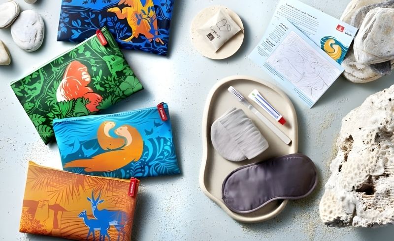 Created in partnership with United for Wildlife, the reusable pouches are made using bio-based materials, including cactus, and feature hand-drawn illustrations inspired by four natural habitats: sea, sky, forest, and desert. Each kit includes a story card highlighting a threatened species—from Arabian oryx and gazelles to green sea turtles, pangolins, and peregrine falcons—offering travellers a quiet moment of reflection mid-journey.