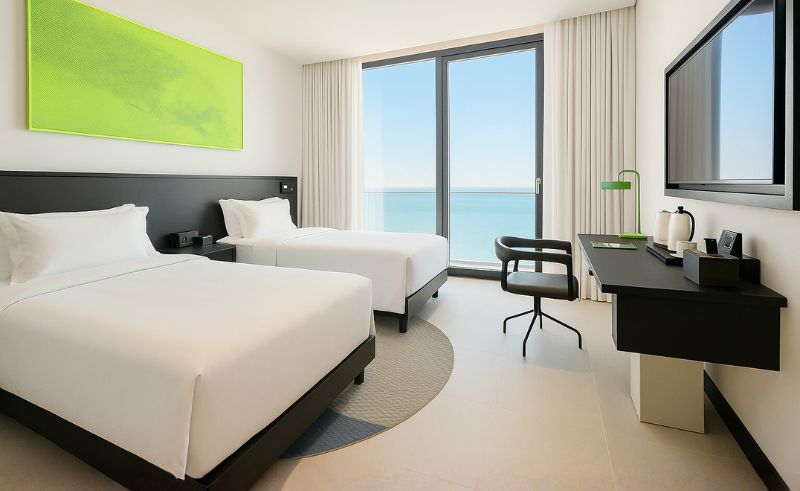 The resort also taps into the island’s outdoors: 28 KM of cycling tracks, running paths, football and tennis facilities, water sports, and access to the upcoming Velodrome, designed to become the region’s premier indoor cycling destination.