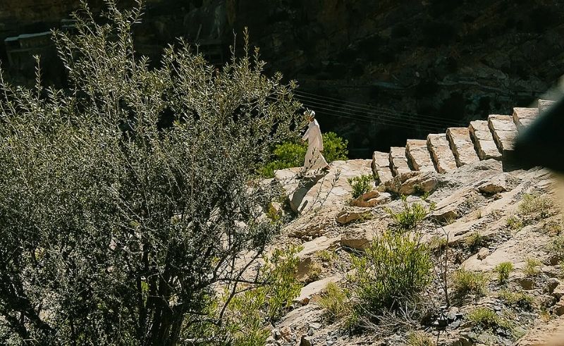 Reaching Suwgra is part of the experience. After leaving the car park, guests walk about 15 minutes along a narrow path into the wadi and then climb the other side, the mountains rising around them.