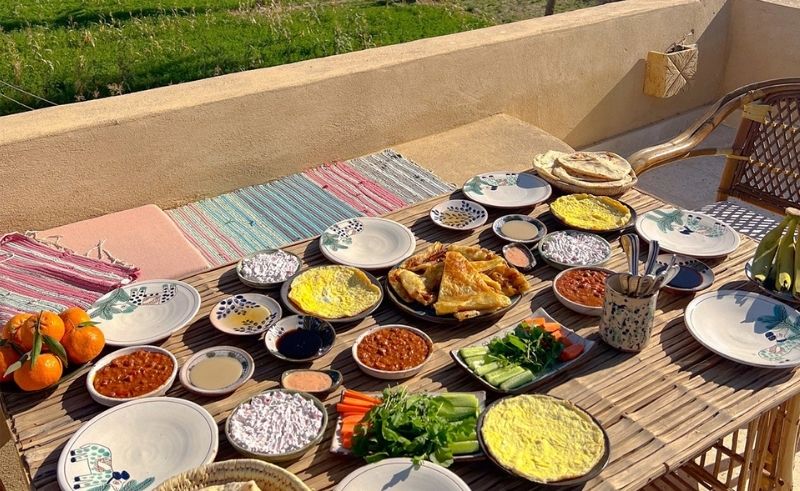 A stay here is a practical tutorial in decompression. The offering is deliberately, brilliantly simple. There is the garden, a green, murmurous room. There is the rooftop, with its vast, moving masterpiece of a Lake Karoun view. There is the breakfast—a sprawling, generous Egyptian feast of ful, ta’ameya, feteer and herby cheeses. It’s as we like to say in colloquial Egyptian, “فطار ملوكي” which roughly translates to a royal breakfast. The much-celebrated mattresses are, indeed, worthy of their fame, promising a sleep so deep you might forget your own name. The magic is in the orchestration of these elements, in the way the house guides you from social sun-drenched terrace to private, shadowy nook, allowing for both connection and the sacred, solitary stare into the middle distance. “It feels more familiar than a regular stay. We’re usually here ourselves and meet our guests in person.”