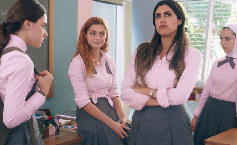 Very quickly, however, AlRawabi makes it clear it isn’t just an Arab version of things we’ve seen before. We immediately find out who beat up Mariam (played by Andria Tayeh) and left her bleeding in the dirt. Mariam proceeds to launch a revenge plan to take down the trio of popular girls: the Blair Waldorf-Regina George of our nightmares, Layan (Noor Taher); the sardonic number two, Rania (Joanna Arida); and the aggressive social climber Ruqqaya (Salsabiela).