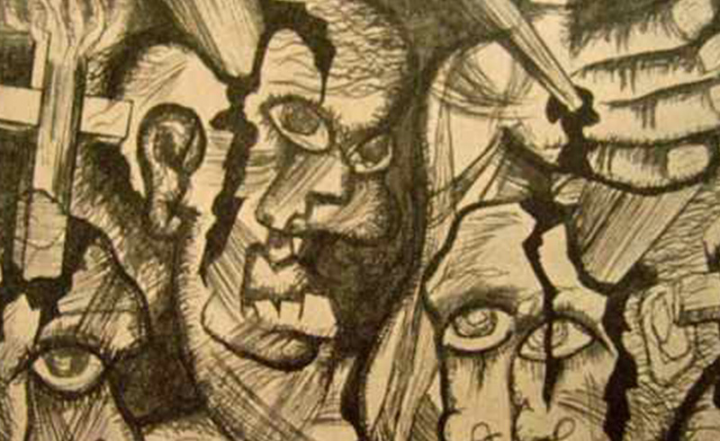 Amongst the biggest names in Egypt’s cultural milieu were attracted to the group, an eclectic mix of Muslims, Christians, Jews and members of the numerous minority nationalities resident in Egypt at the time, including painters Angelo de Riz, Adham and Seif Wanly and Inji Aflatoun, writers Ramses Younan and Albert Cossery and photographer Ida Kar. Their manifesto, which famously proclaimed “Long Live Degenerate Art” was a response to an exhibition held by the Nazi regime in Munich, in which Jewish, leftist and other “undesirable” artworks were exhibited as an example of the styles of art which were to be eradicated in the new fascist world order.