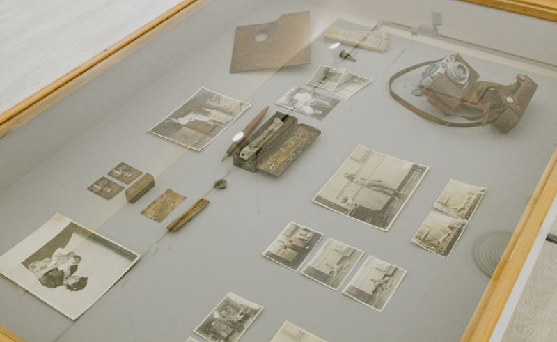 But beyond the artworks, the viewer will find glass displays inside which a parallel story is told. The displays offer glimpses into Charobim’s personal life and artistic methodology: the cameras and magnifying tools he extensively employed, the journal in which he saved newspaper clippings about his work, and the photos of the people and places which served as a reference to many of the artworks on display. Viewed together, the exhibition becomes an open-ended investigation into the artist behind the artworks.