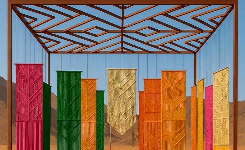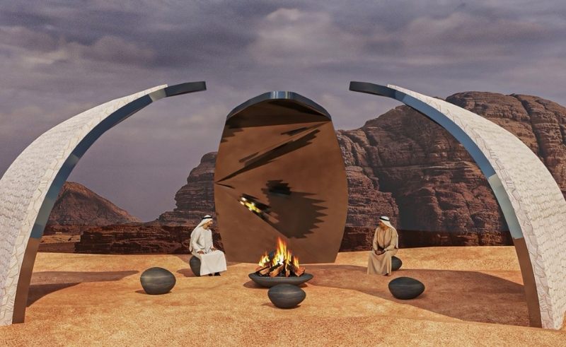 This radical installation guides visitors through a journey across time, material, and memory. The structure references archaeological findings spanning the Palaeolithic to Late Pre-Islamic periods, allowing movement through layers of history. Each step through the installation echoes excavation and discovery, offering a contemplative experience of the desert as both gallery and chronicle.