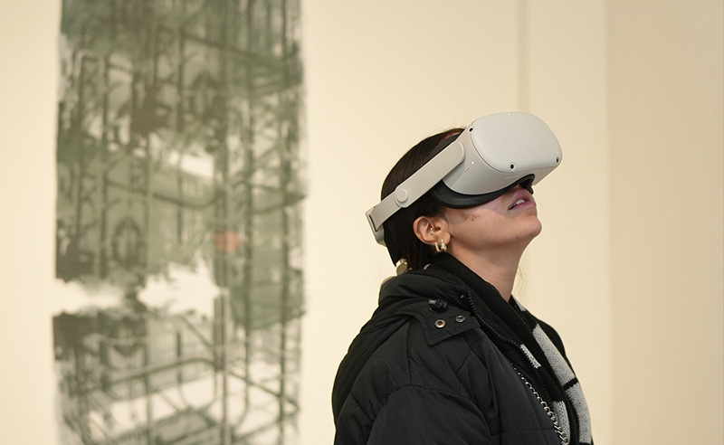 One of the standout pieces of the exhibition was Tasnim Yousry’s 'Cage', a virtual reality installation with a simple premise: when you put on the VR headset, you are transported inside a small green cage, surrounded by people who are watching you. The execution is excellent, perhaps especially so because of the audio. Yousry used sound bites from her own childhood videos and from videos found on YouTube, and as you are trapped in the cage you can hear the happiness it brings to those watching you. You can hear, for instance, a man remark proudly in Egyptian Arabic, "It was born here in the zoo."