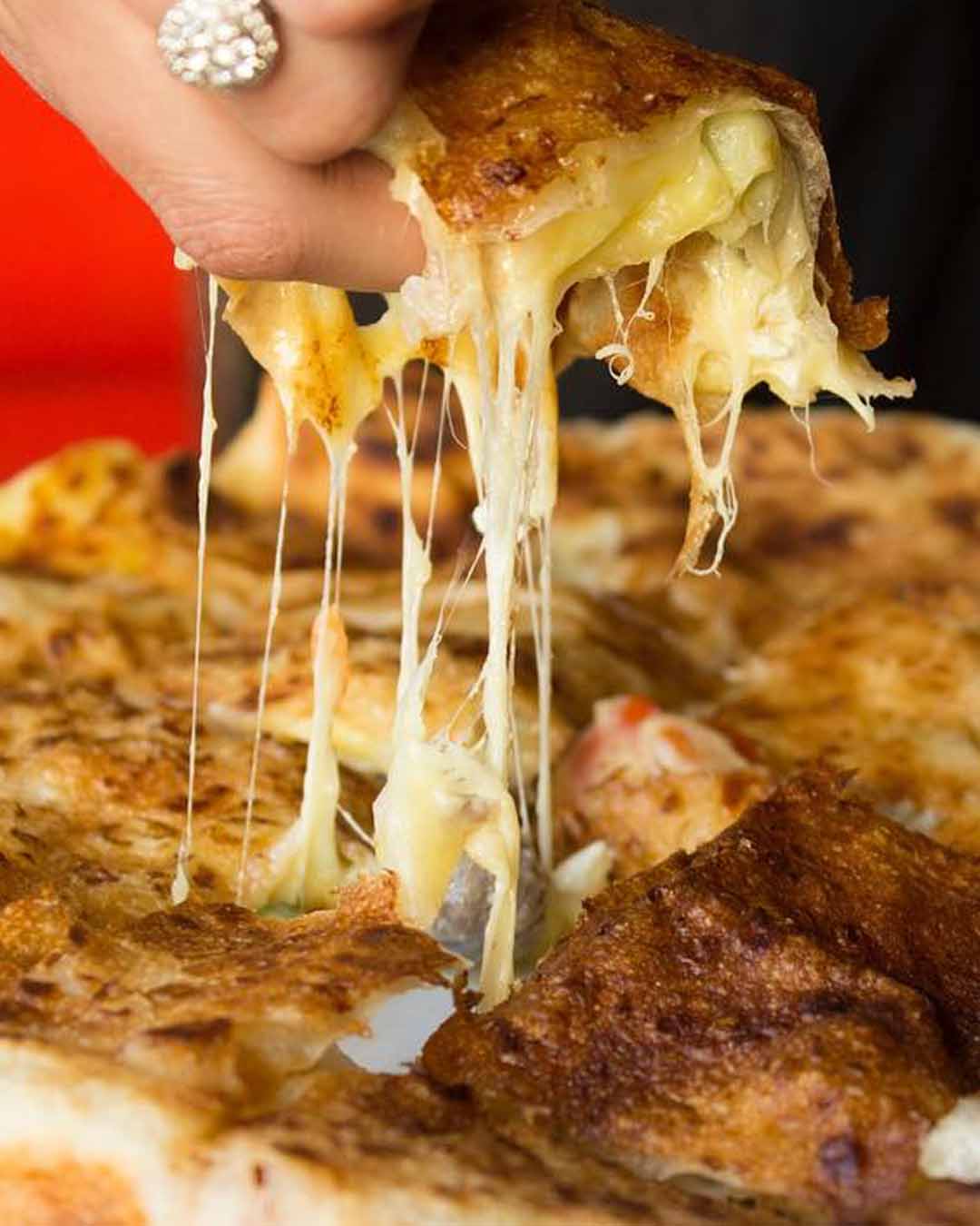 Forget the skimpy quattro-formaggis, Samiha’s loaded cheese pie is cheesily beautiful inside out, oozing with the golden goodness of a melted roomi-mozzarella mix and topped with a generous cream cheese layer.
