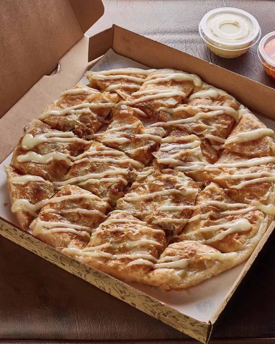 Rushing through morning errands that never seem to end? Feteera’s box of feteer rolls, which has everything from pastrami to alfredo fungi, is the perfect impromptu restorative stop to keep you going.