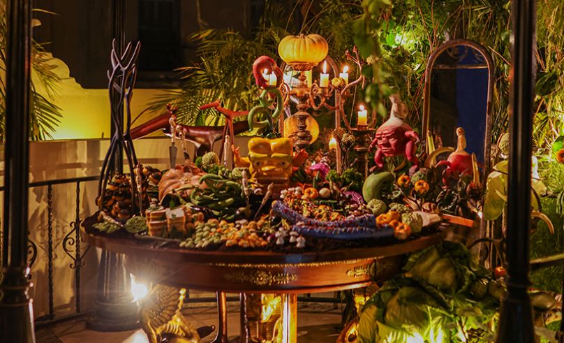 Animated fauna and flora, eggplants and miso dance at Mazeej for Cairo Food Week.