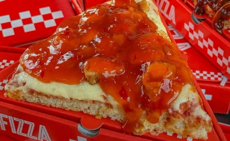 Fruit on pizza remains controversial, and mango has entered the chat confidently. Sweet, tangy, and unapologetically loud, this slice exists for people who enjoy watching others argue while they eat.