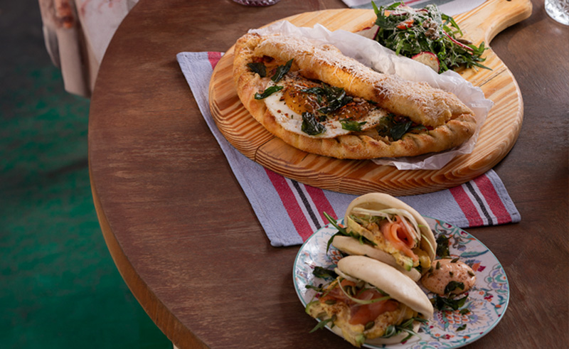 Ozel’s Mediterranean for four (or just one, we won’t judge) is essentially a Turkish breakfast extravaganza. It includes a variety of dishes, from sujuk-infused omelettes and shakshuka to an assortment of cheeses, salads, olive dips, jams, and, of course, Pide bread (because Pide bread is a must).