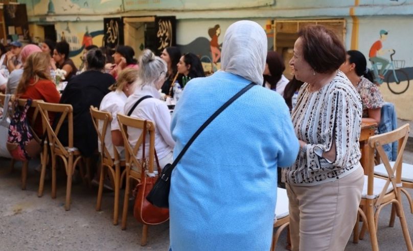 After a full day of activities where the body can’t wait to melt into a seat and your stomach grumbles calling for refuel, we found our way back to Stabene Community Centre ready for the main event: dinner. We settled around a long family-sized table setup in between the old facades of Port Said under fairy lights, turning it into our very own dining room. As we were preparing the table outside, the neighbors next door sent over a tray of Mahshi. Teta Mary’s daughter and granddaughter helped set up the table, and Zeina and Mary brought out the platters of food one by one. As more neighbors and frequent visitors of Stabene cultural centre streamed in, another table was added and the meal continued.