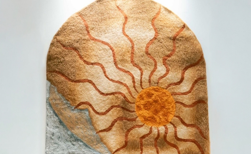 Drawing from Rumi, Khalil Gibran, and voices across cultures, the work weaves sun and moon imagery into a textile landscape where light and darkness coexist as necessary forces for growth. The sun and moon are rendered in intricate patterns that echo both cosmic cycles and the truths we attempt to hide. Like Banksy’s 2006 street work 'Sweep it Under the Carpet', this piece confronts what we refuse to acknowledge, yet offers a gentle revelation on vulnerability and strength. What we sweep beneath becomes illuminated, a reminder that we all love, endure, and rise under the same vast sky.”