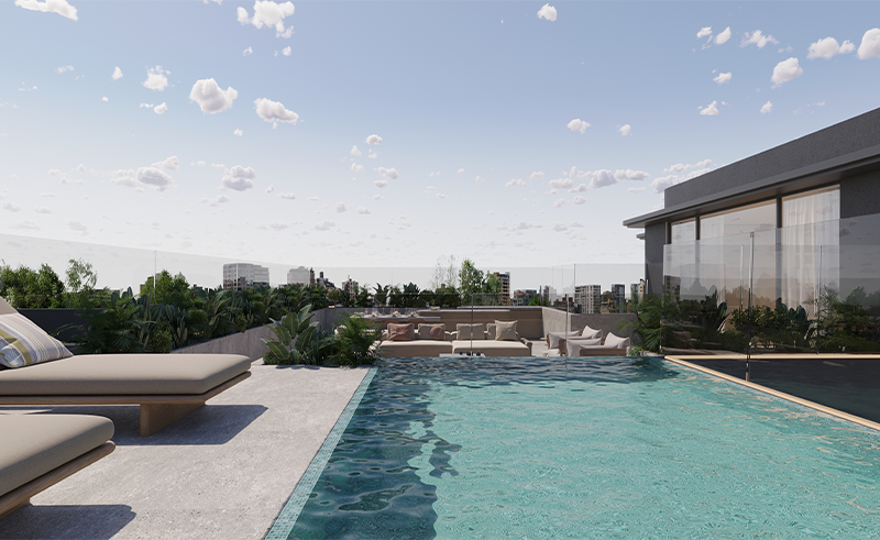 Planting strategies reinforce this reading of space. Vegetation is layered to create depth, soften edges, and maintain continuity between communal areas and residential clusters. Materials and surfaces are selected for tactility and consistency, supporting the intention of a grounded, cohesive environment that feels both composed and lived in.