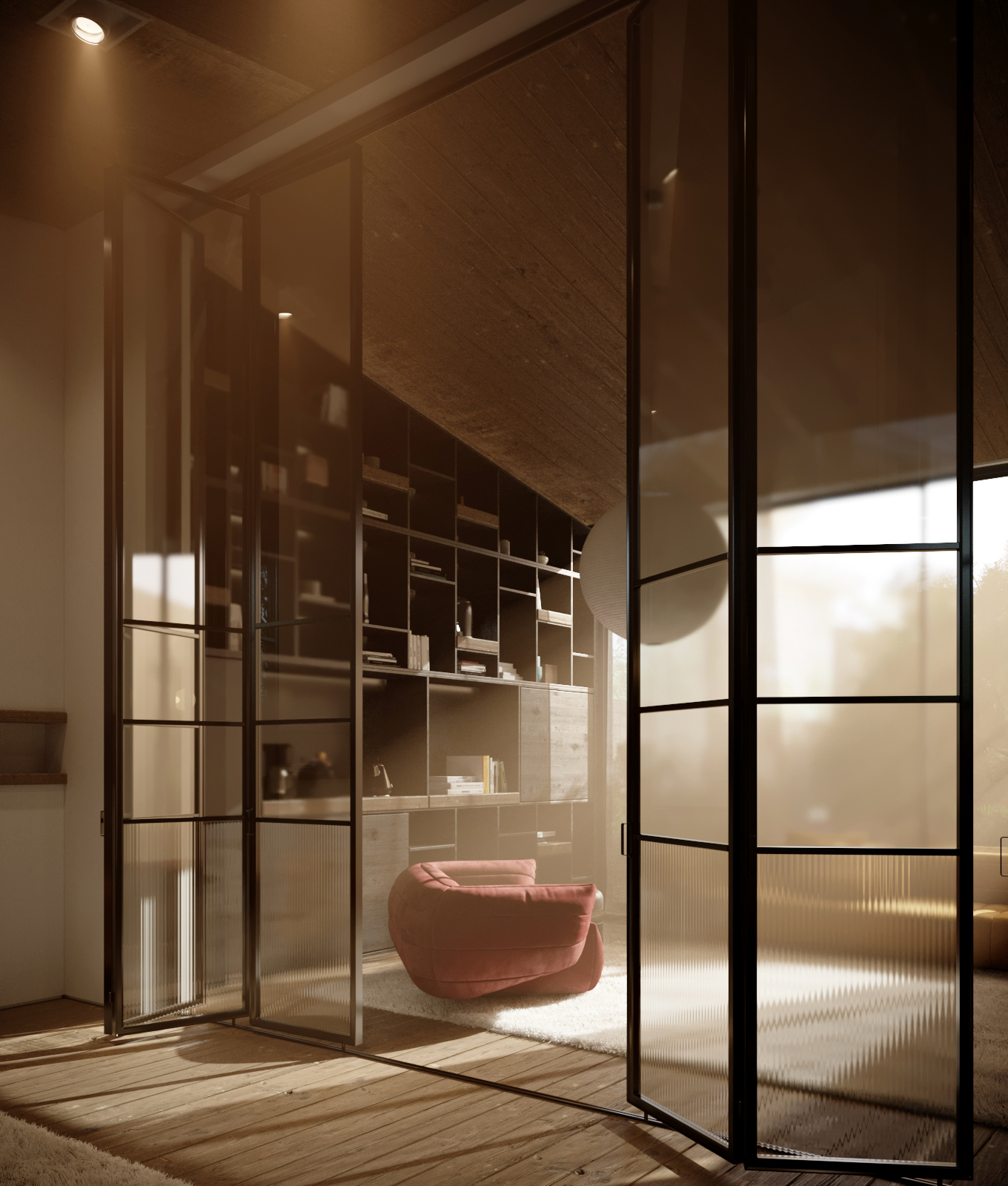 Meant for private gatherings in Arabian homes, Majles need to be flexible in their use. To set the tone, however, Fahmy relied on a 3D technique that’s known as ‘God rays’. “Volumetric lighting is an important aspect of the project, it helps define the space, and create a warm and inviting atmosphere,” Fahmy says, describing the graphics trick used to add natural lighting to renders.