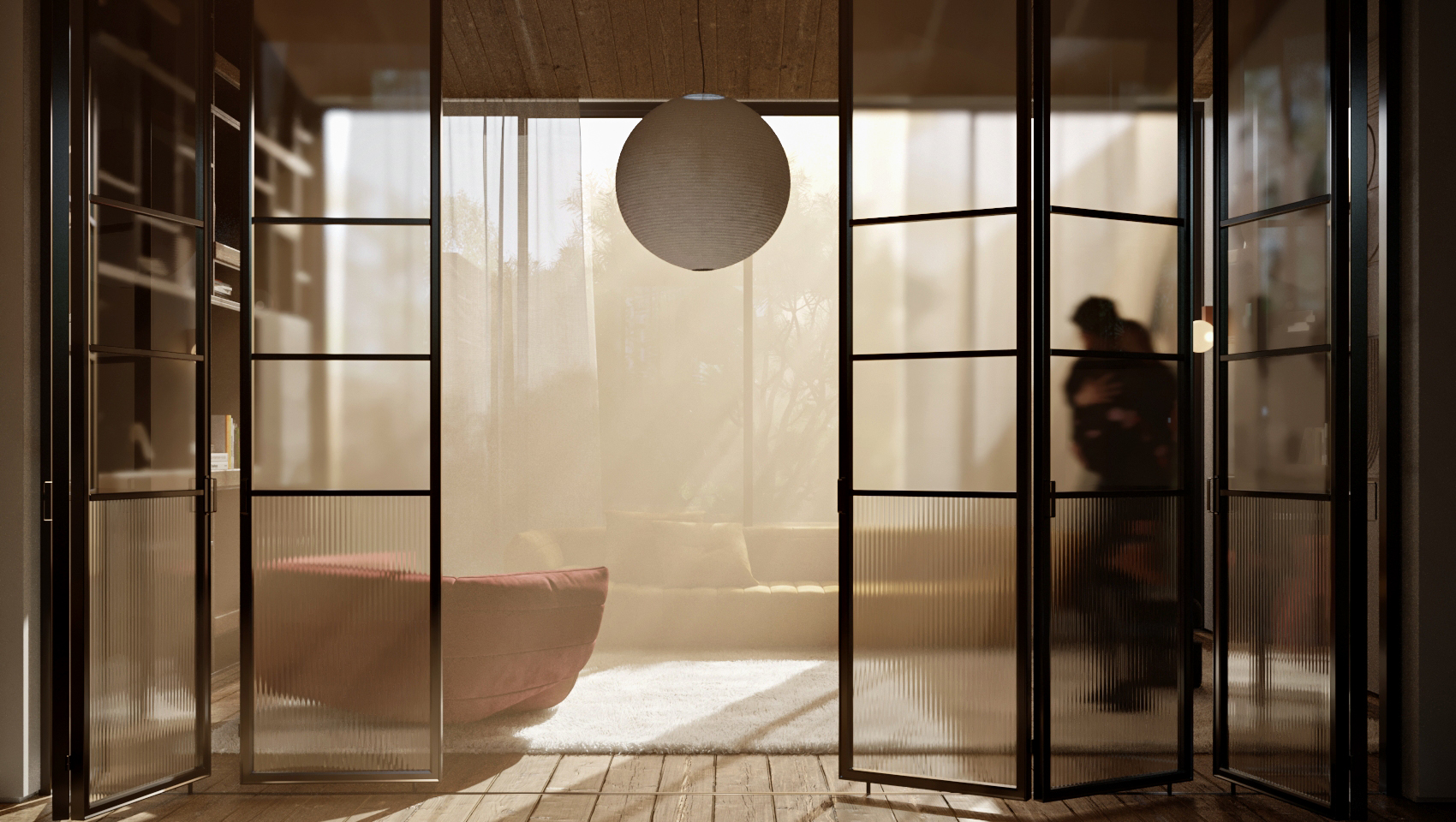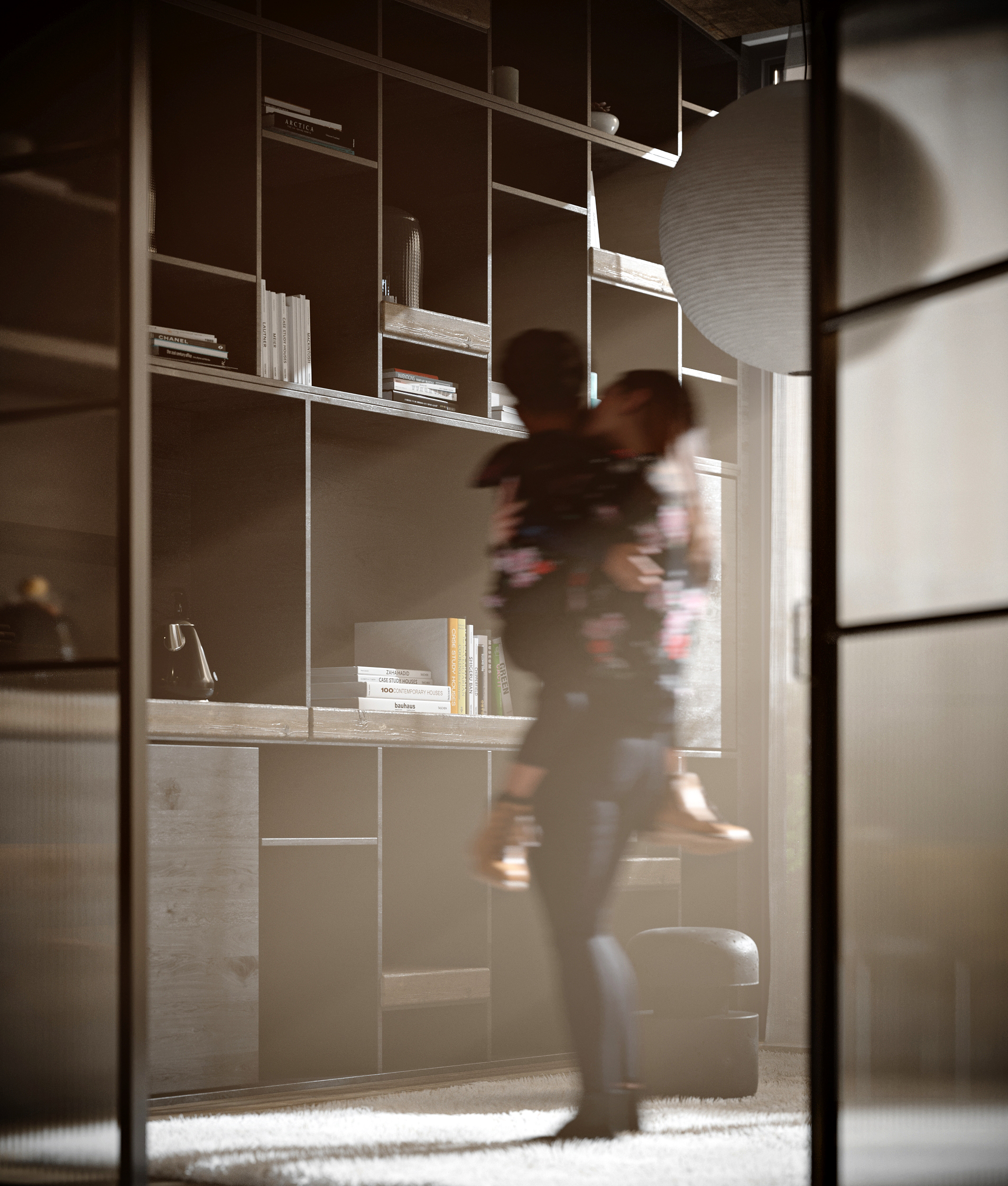 Natural light is a must-have in any family home, and in this conceptual private villa in Riyadh, Saudi Arabia, Cairo-based visualisation studio 01iterations used it to highlight the textures in a sitting area, making it feel cosier and larger.