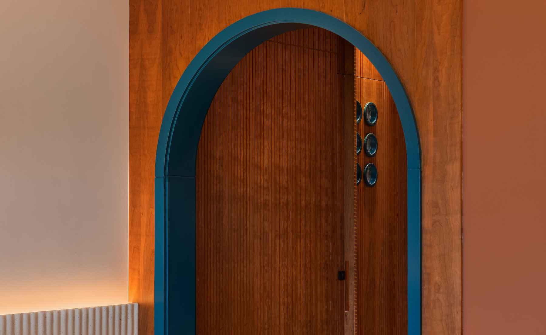 This circular shape sets the tone for the house. “The pool wasn’t just a feature, it became the guiding shape for the architecture,” Hosny says. “The curve appears again in the pergola’s edge, the rounding of doors and windows, and the rhythm of the fence. It’s repeated subtly so you sense it in how the house flows.”