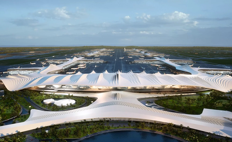 Flowy, sustainable, and dune-like, Dubai’s Al Maktoum Airport design is led by Austrian architects Coop Himmelb(L)au.