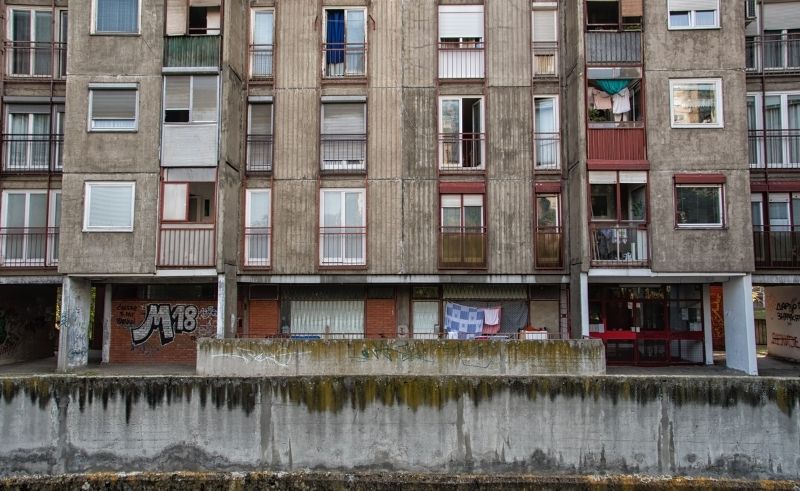 Brutalist concrete, so often read as severity, instead was a means to manifest this socialist dream. In Yugoslavia, this ambition found fertile ground in Belgrade, particularly in New Belgrade, a vast expanse of mass housing blocks conceived almost from scratch. Here ideological aims of class equality were translated into affordable mass housing, generous public space, and civic institutions embedded into everyday life.
