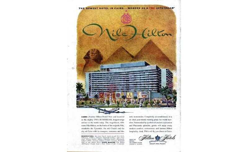 An archival photograph from 1959 captures an improbable intimacy. In it, Gamal Abdel Nasser stands shoulder to shoulder with Josip Broz Tito, Former President of Yugoslavia, and Conrad Hilton, President of Hilton Hotels, in his emblematic cowboy hat. The occasion is the opening of the Cairo Hilton, where a new form of modernism rises on Nile’s edge, with hieroglyphics sketched on the facade.