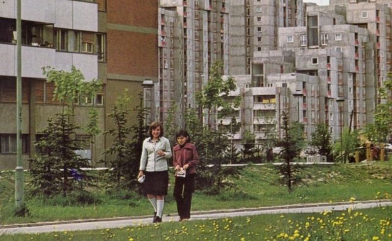 Each block of buildings was constructed explicitly around the hums of collective life. Repetitive windows and perpendicular lines became symbols of equality, and residential blocks socially engineered proximity and unity. From balconies facing inward, parents said their goodbyes as streams of kids headed to the green spaces inside, where a kindergarten, a playground, and sports field sat at the centre. There was no need for long commutes or for school districts; communal spaces were woven into residential blocks, collapsing the distance between private life and public belonging.